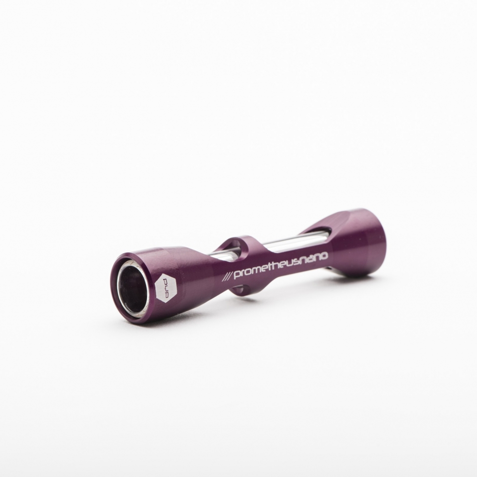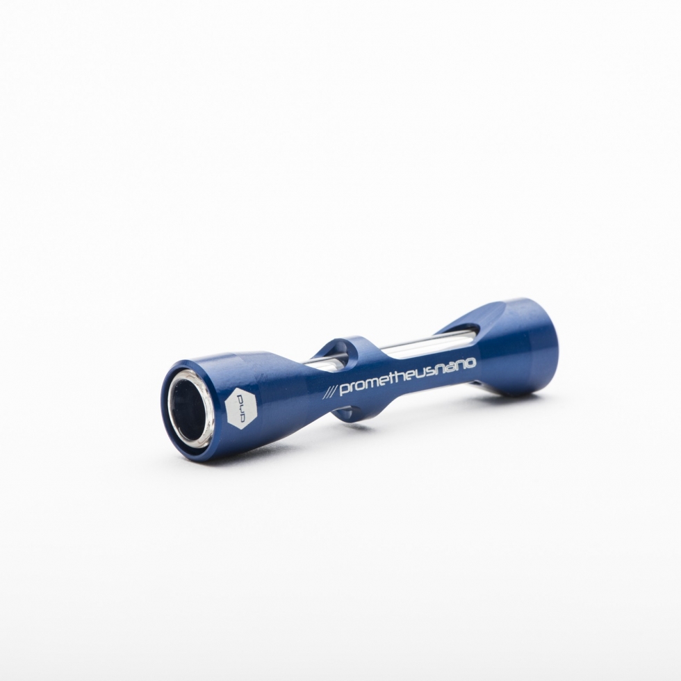 Introducing the premier chillum-style glass and metal pipe in the industry: The Pyptek Prometheus Nano. This singular design combines the discrete portability of a traditional glass one-hitter with the unparalleled durability of the Pyptek Prometheus system. Available in five prismatic colors, the Nano sets a new standard for style and utility.